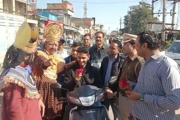 रावण-यमराज बने कलाकारों ने दिया हेलमेट-सीट बेल्ट का संदेश