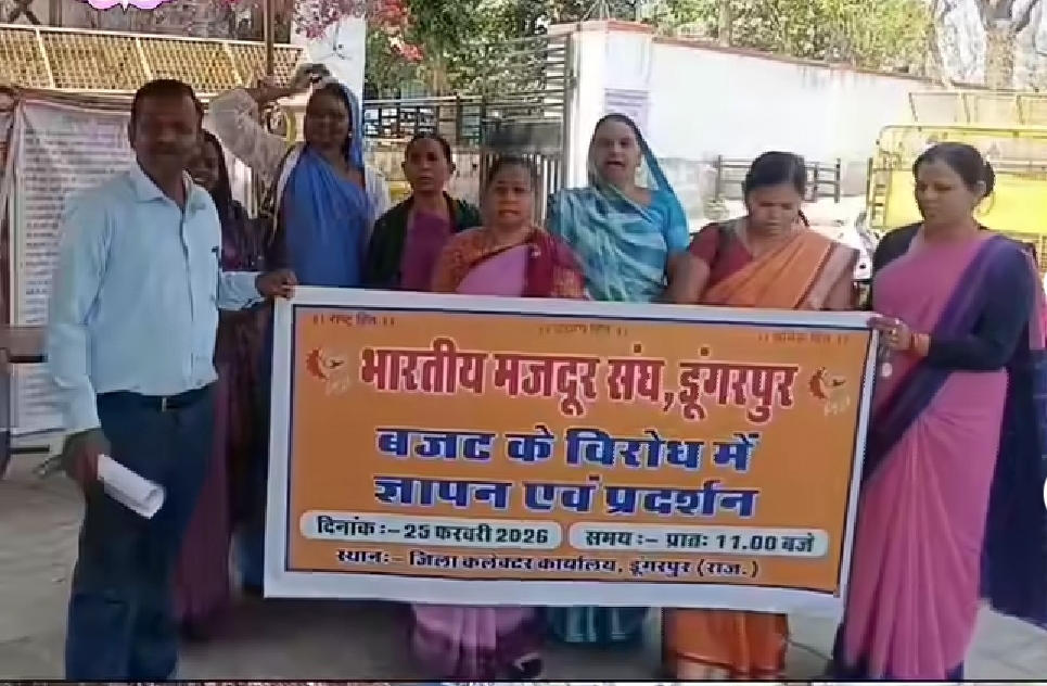 भारतीय मजदूर संघ (BMS) के राष्ट्रव्यापी आह्वान पर बुधवार को डूंगरपुर जिला मुख्यालय पर श्रमिकों और कर्मचारी संगठनों ने अपनी मांगों को लेकर जोरदार प्रदर्शन किया. प्रदेश बजट में श्रमिक वर्ग की कथित अनदेखी से नाराज सैकड़ों की संख्या में श्रमिक, पेंशनर, संविदाकर्मी, आंगनबाड़ी कार्यकर्ता, आशा सहयोगिनी और मिड डे मील कर्मी कलेक्ट्रेट पर एकत्र हुए और सरकार के खिलाफ जमकर नारेबाजी की.
