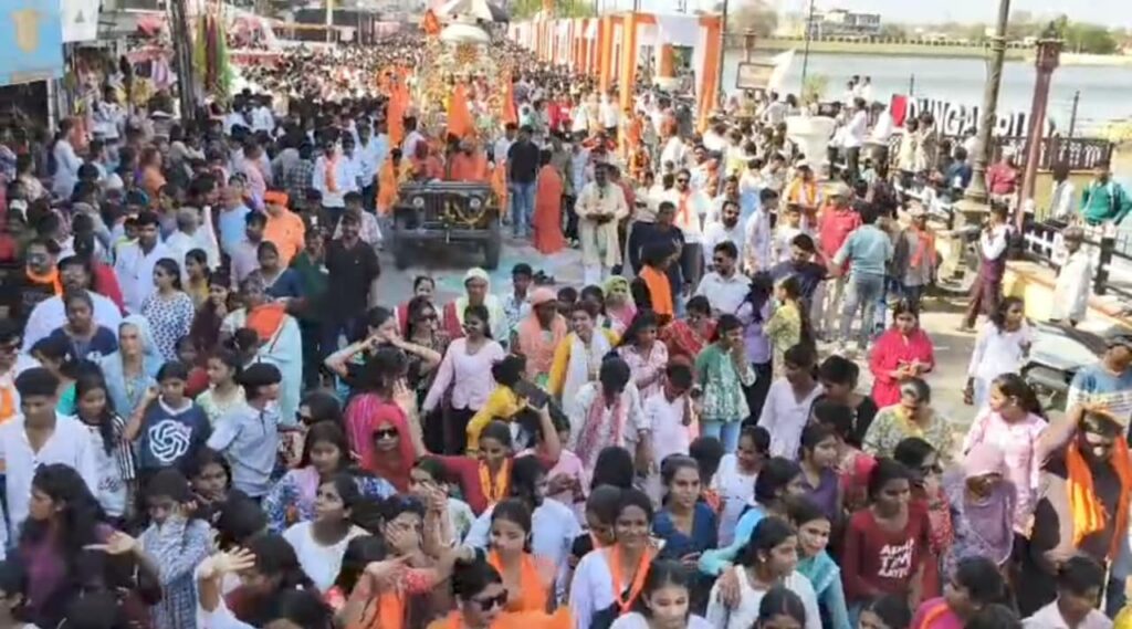 रामनवमी के उपलक्ष्य में विशाल शोभायात्रा का शुभारंभ शहर के ऐतिहासिक बादल महल से हुआ. यहां से शुरू हुई यह यात्रा पुराने शहर के विभिन्न मार्गों, तंग गलियों और प्रमुख बाजारों से होकर गुजरी. शोभायात्रा का नजारा इतना विहंगम था कि जहां तक नजर जा रही थी, वहां केवल श्रद्धालुओं का हुजूम और लहराते भगवा ध्वज ही दिखाई दे रहे थे.