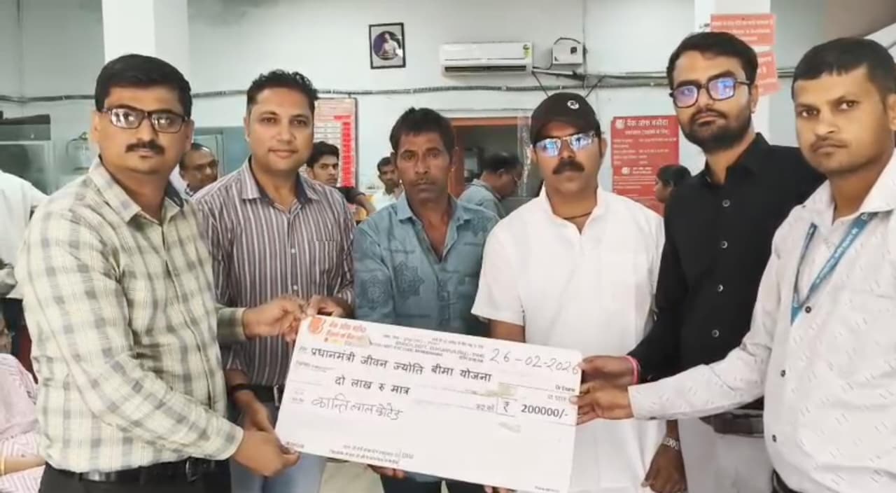 जानकारी के अनुसार, क्षेत्र के चुन्दवाड़ा निवासी शारदा देवी कोटेड ने बैंक ऑफ बड़ौदा शाखा सीमलवाड़ा के बीसी (बिजनेस कॉरेस्पोंडेंट) रणवीर सिंह के माध्यम से इस योजना के तहत अपना जीवन बीमा करवाया था. हाल ही में शारदा देवी की सामान्य मृत्यु हो गई थी. परिवार पर आए इस अचानक संकट के समय में, बैंक की यह बीमा योजना उनके लिए बड़ा आर्थिक सहारा बनकर उभरी.