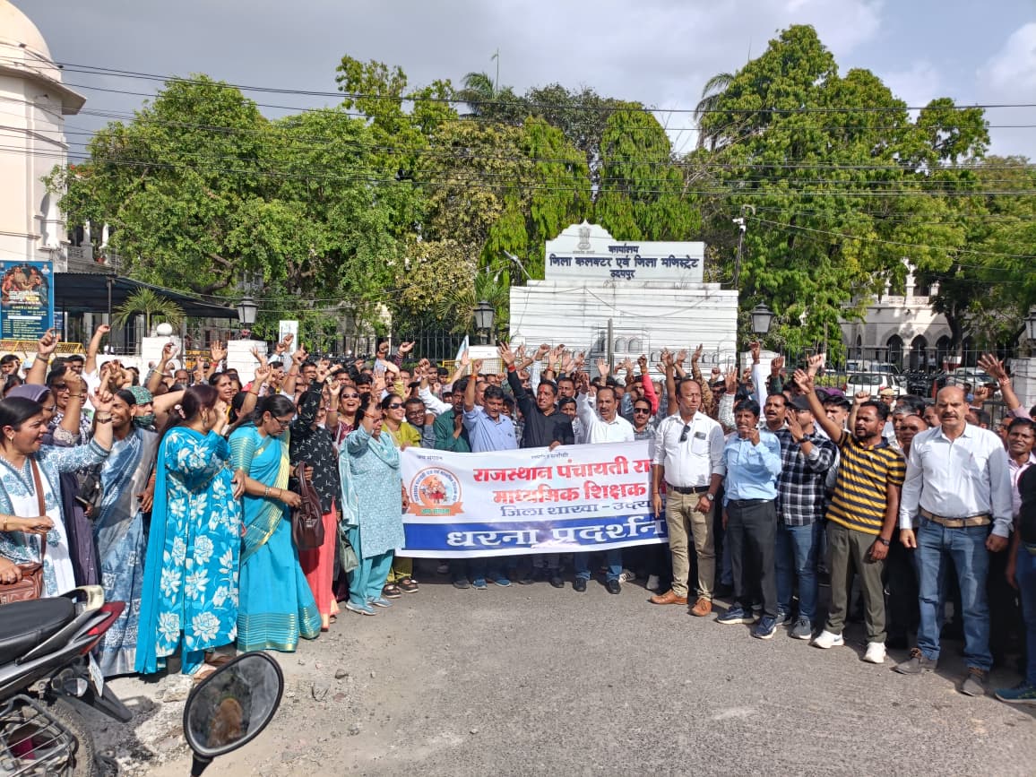 चेतावनी: यदि सरकार ने शीघ्र सकारात्मक निर्णय नहीं लिया, तो 17 मई को जयपुर में राज्यव्यापी धरना प्रदर्शन किया जाएगा. प्रदर्शन के दौरान नवीन व्यास, भेरूलाल कलाल, सुभाष बिश्नोई सहित सैकड़ों शिक्षक मौजूद रहे.
