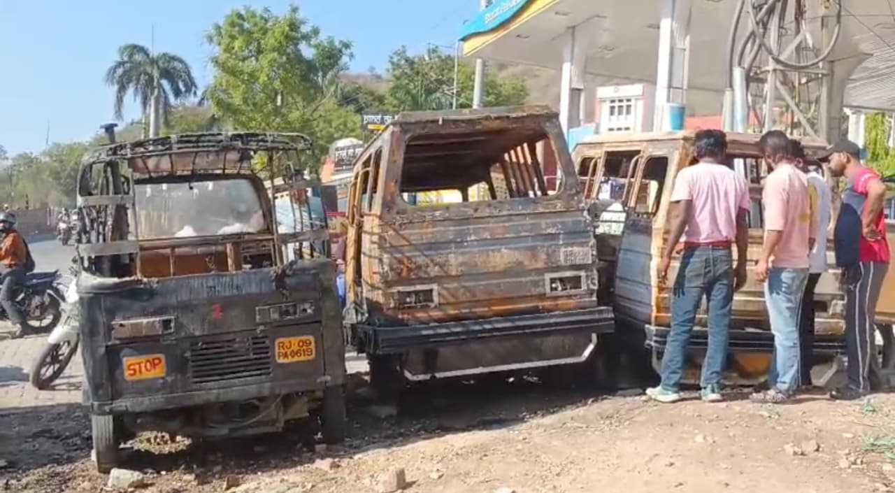 झीलों की नगरी उदयपुर के पटेल सर्कल पर मंगलवार तड़के एक बड़ा हादसा होने से बाल-बाल बच गया. पेट्रोल पंप के ठीक बाहर खड़ी गाड़ियों में अचानक भीषण आग लग गई, जिसने देखते ही देखते विकराल रूप धारण कर लिया. इस घटना में 4 ऑटो रिक्शा और एक कार पूरी तरह जलकर राख हो गए. गनीमत रही कि दमकल विभाग ने समय रहते आग पर काबू पा लिया, अन्यथा पेट्रोल पंप के पास होने के कारण शहर के व्यस्ततम इलाके में बड़ी जनहानि हो सकती थी.